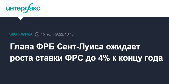 Глава ФРБ Сент-Луиса ожидает роста ставки ФРС до 4% к концу года