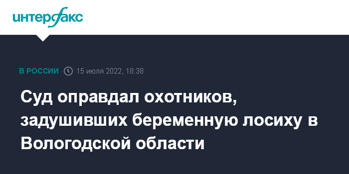 Москва. 15 июля. INTERFAX.RU - Череповецкий районный суд вынес оправдательный приговор трем мужчинам по делу о жестком убийстве на охоте беременной лосихи, сообщает объединенная пресс-служба судов Вологодской области.