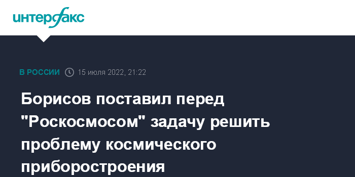 Москва. 15 июля. INTERFAX.RU - Перед "Роскосмосом" стоит задача решить проблему космического приборостроения, заявил новый глава госкорпорации Юрий Борисов.