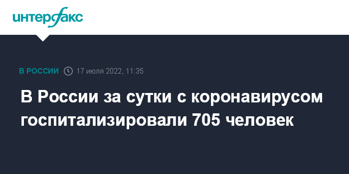 Как отмечается, по состоянию на 17 июля, в России количество госпитализаций за сутки составило 705 человек и снизилось в сравнении с предшествующими на 46,3%.