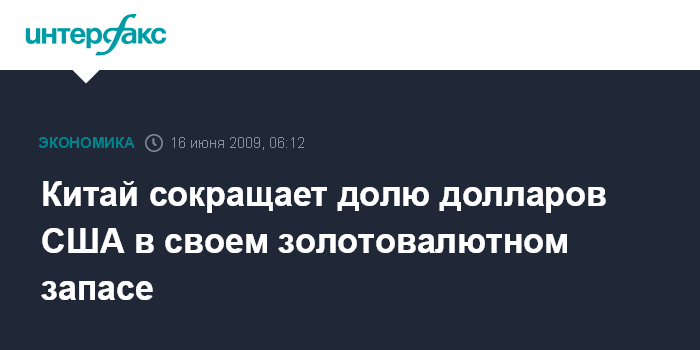 Пекин. 16 июня. ИНТЕРФАКС-КИТАЙ - В апреле 2009 года Китай сократил долларовую часть своего золотовалютного запаса на $4,4 млрд по сравнению с мартом 2009 года, сообщили во вторник местные СМИ.