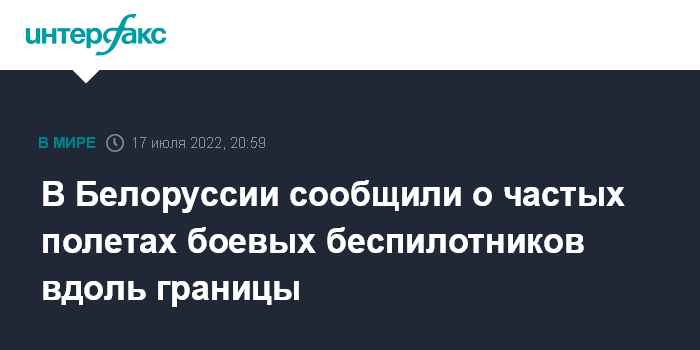 Москва. 17 июля. INTERFAX.RU - Вдоль границы Белоруссии часто фиксируются полеты боевых и разведывательных беспилотников, сообщил заместитель командующего ВВС и войсками ПВО Вооруженных сил республики, генерал-майор Дмитрий Михолап.