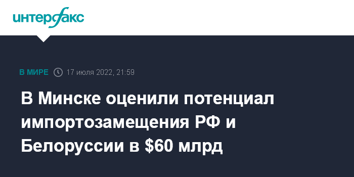 В Минске оценили потенциал импортозамещения РФ и Белоруссии в $60 млрд