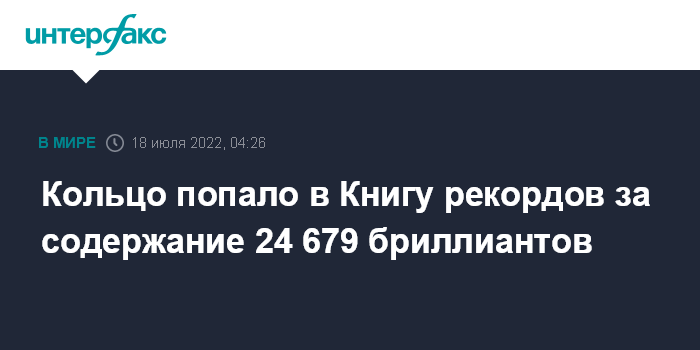 Кольцо попало в Книгу рекордов за содержание 24 679 бриллиантов
