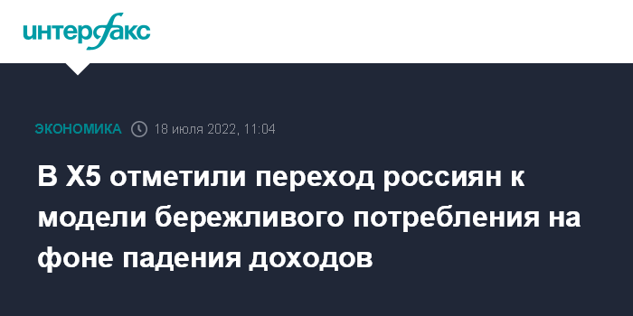 Москва. 18 июля. INTERFAX.RU - Население РФ переходит на модель бережливого потребления на фоне сокращения реальных доходов, отметил крупнейший в России ритейлер X5 Group.