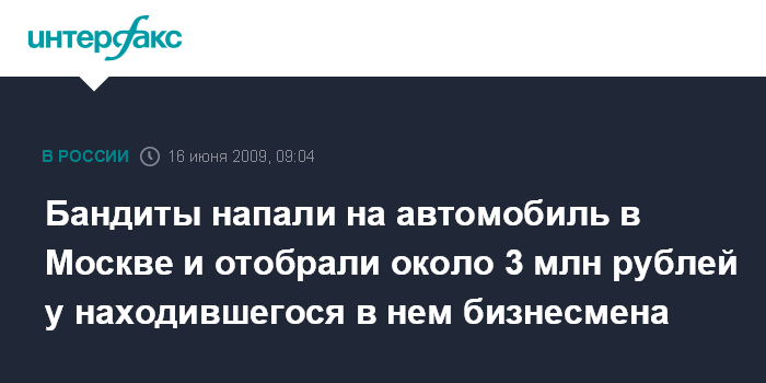 Бандиты напали на автомобиль в Москве и отобрали около 3 млн рублей у находившегося в нем бизнесмена