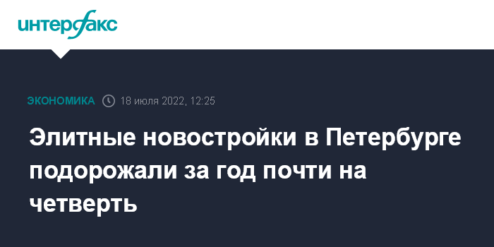 Москва. 18 июля. INTERFAX.RU - На первичном рынке Петербурга квадратный метр элитного жилья подорожал за год на 22%, показало исследование Knight Frank St. Petersburg.