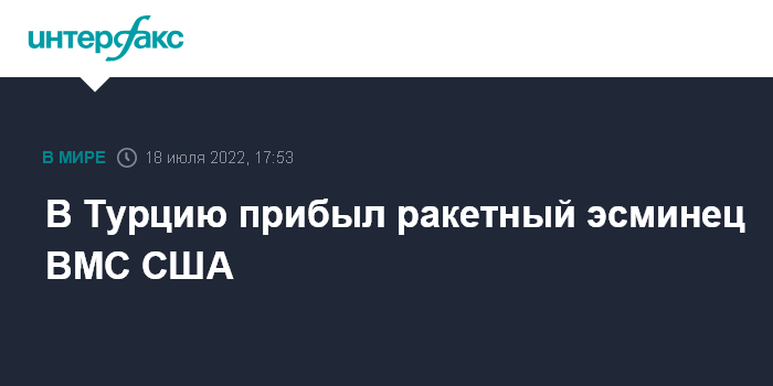 Москва. 18 июля. INTERFAX.RU - В турецкую военно-морскую базу Аксаз, расположенную на юго-западе страны, в понедельник зашел американский ракетный эсминец USS Bainbridge, сообщил 6-й оперативный флот США.