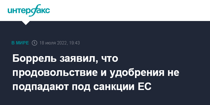 Боррель заявил, что продовольствие и удобрения не подпадают под санкции ЕС