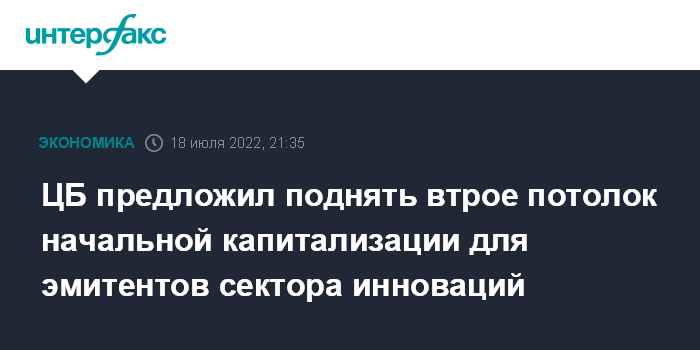 ЦБ предложил поднять втрое потолок начальной капитализации для эмитентов сектора инноваций