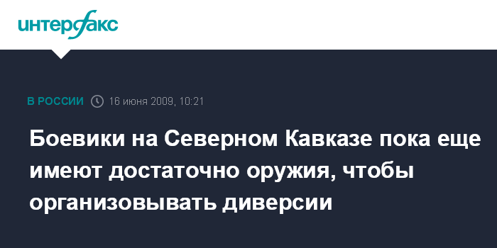 Москва. 16 июня. INTERFAX.RU - В российских спецслужбах заявляют, что боевики на Северном Кавказе еще располагают значительным количеством вооружения для совершения диверсий.