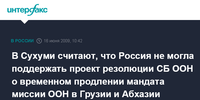 В Сухуми считают, что Россия не могла поддержать проект резолюции СБ ООН о временном продлении мандата миссии ООН в Грузии и Абхазии