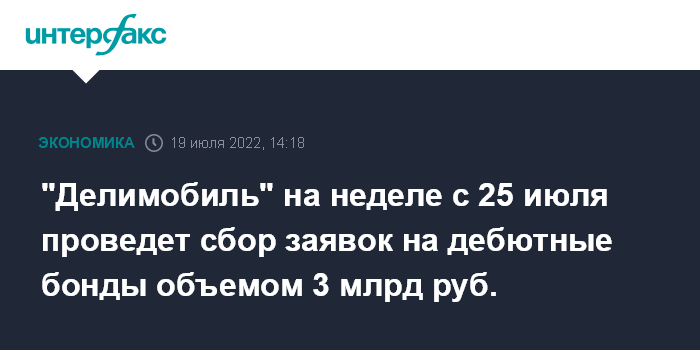 "Делимобиль" на неделе с 25 июля проведет сбор заявок на дебютные бонды объемом 3 млрд руб.