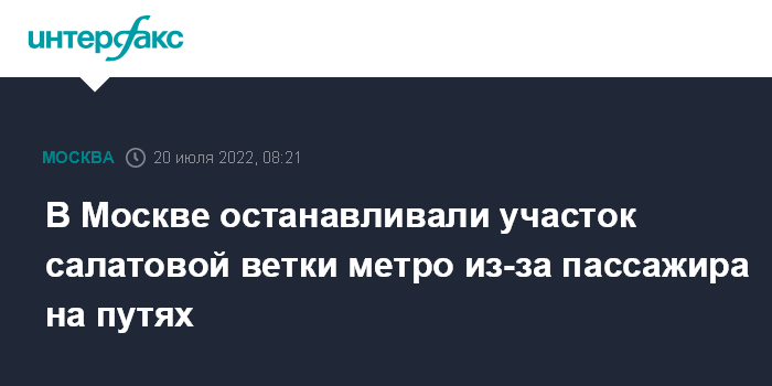 Первое сообщение об инциденте появилось в телеграм-канале департамента в 8:07. В 8:24 чиновники сообщили, что движение по линии восстановлено и начинает входить в график.