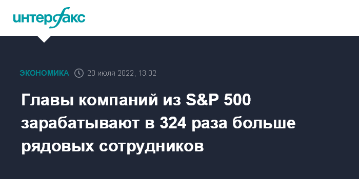 Главы компаний из S&P 500 зарабатывают в 324 раза больше рядовых сотрудников