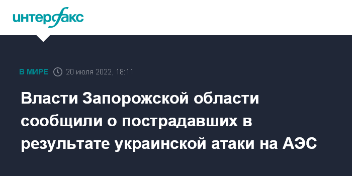 Власти Запорожской области сообщили о пострадавших в результате украинской атаки на АЭС