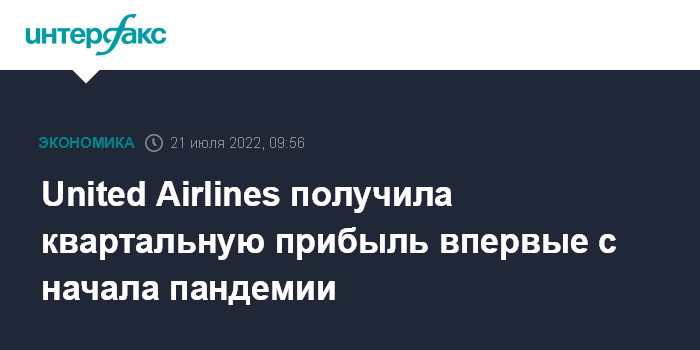 Москва. 21 июля. INTERFAX.RU - Американская холдинговая компания United Airlines Holdings Inc., материнская компания авиаперевозчика United Airlines, во втором квартале 2022 года получила чистую прибыль впервые с начала пандемии коронавируса. Однако скорректированная прибыль и выручка United оказались ниже прогнозов рынка.