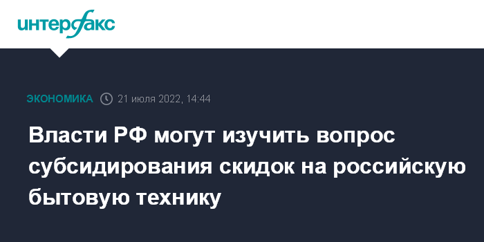 Власти РФ могут изучить вопрос субсидирования скидок на российскую бытовую технику
