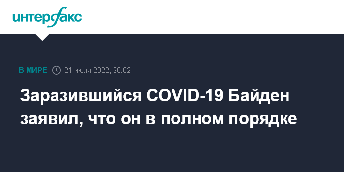 Ранее пресс-секретарь Белого дома Карин Жан-Пьер сообщила, что Байден получил положительный результат тестирования на COVID-19, ему назначили лечение, но он продолжает выполнять обязанности из своей резиденции. Она добавила, что президент США испытывает легкие симптомы заболевания и начал принимать лекарство от коронавируса Paxlovid, разработанное компанией Pfizer.