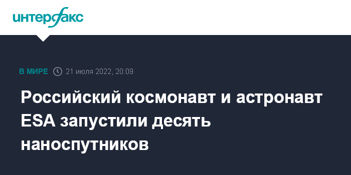 Российский космонавт и астронавт ESA запустили десять наноспутников