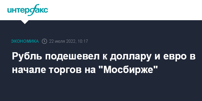 Москва. 22 июля. INTERFAX.RU - На старте торгов пятницы на "Мосбирже" курс рубля снижается к доллару и евро перед заседанием Банка России по ключевой ставке.