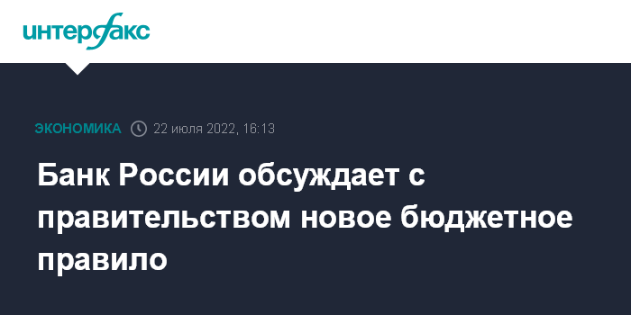 Москва. 22 июля. INTERFAX.RU - Банк России и правительство обсуждают возможную модификацию бюджетного правила, заявила председатель ЦБ Эльвира Набиуллина, не став комментировать конкретные параметры.