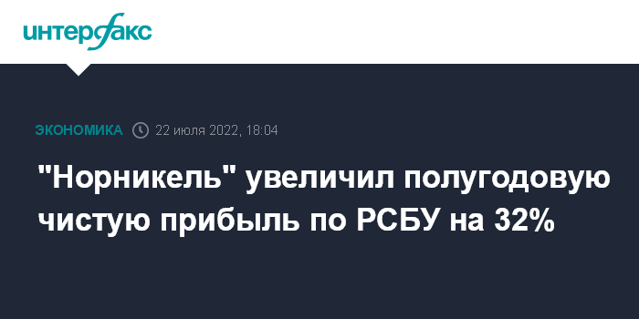 Москва. 22 июля. INTERFAX.RU - Выручка "Норникеля" по РСБУ в первом полугодии 2022 года выросла на 28% в годовом исчислении и составила 425,63 млрд рублей, следует из раскрытия компании.