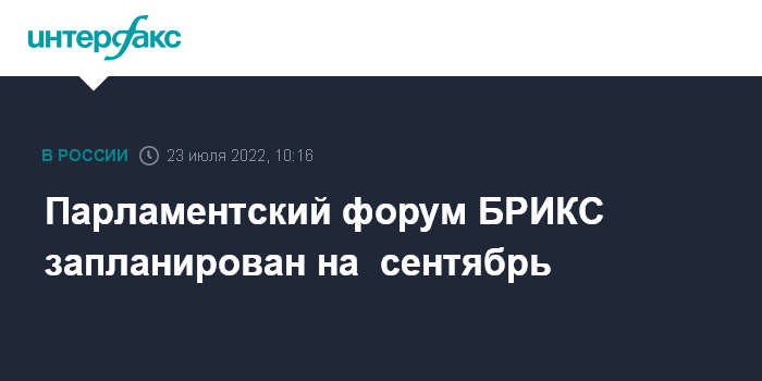 Москва. 23 июля. INTERFAX.RU - Председатель Госдумы Вячеслав Володин анонсировал участие российской делегации в сентябре в парламентском форуме БРИКС.