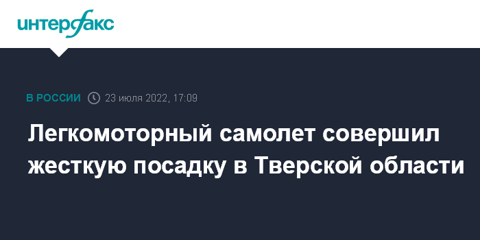 Москва. 23 июля. INTERFAX.RU - Транспортная прокуратура начала проверку по факту жесткой посадки легкомоторного самолета в Тверской области.