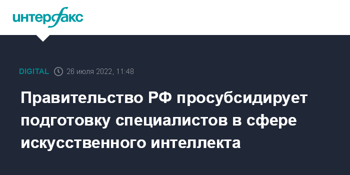 Москва. 26 июля. INTERFAX.RU - Правительство РФ выделит субсидии на программу повышения квалификации специалистов, занимающихся развитием искусственного интеллекта (ИИ), соответствующее постановление подписал премьер Михаил Мишустин.