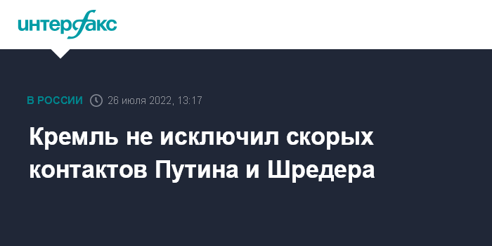 Москва. 26 июля. INTERFAX.RU - В Кремле не исключают контактов президента Владимира Путина с бывшим канцлером Германии Герхардом Шредером, который сейчас находится в Москве.