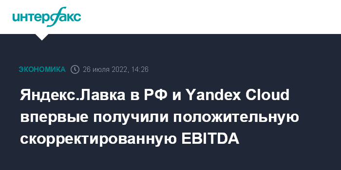 Москва. 26 июля. INTERFAX.RU - "Яндекс.Лавка" в России впервые получила положительный показатель скорректированной EBITDA. Об этом говорится в письме акционерам "Яндекса" по результатам финансовых показателей за II квартал.