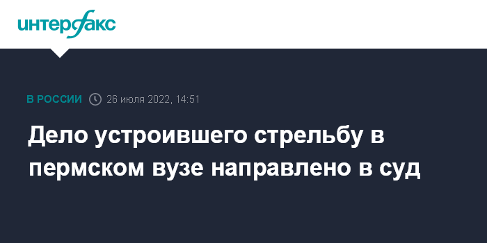 Дело устроившего стрельбу в пермском вузе направлено в суд