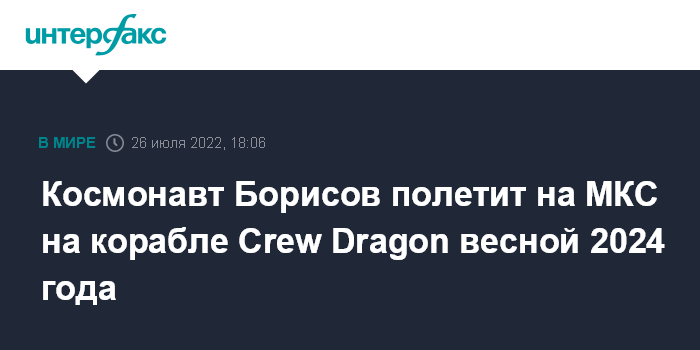 Согласно данным, представленным в журнале, Борисов войдет в состав экипажа Crew Dragon USCV-8, запуск которого запланирован на весну 2024 года.