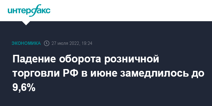 Падение розничного рынка в июне замедлилось, в мае оно составляло 10,1%. Консенсус-прогноз "Интерфакса" на июнь был ниже - 9,1%