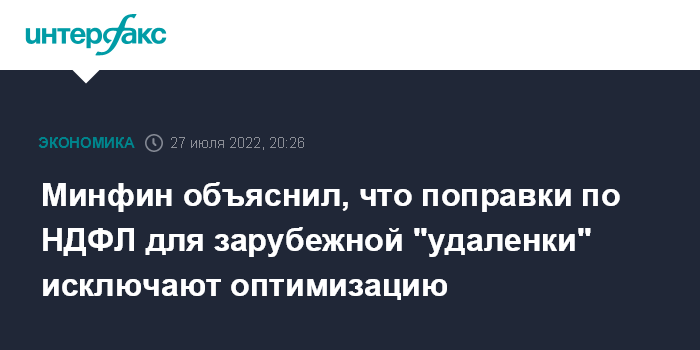 Основная цель предложенных изменений - исключить практику неуплаты (оптимизации) НДФЛ с выплат дистанционным работникам, которые не получают статус налогового резидента ни в одном государстве или получают такой статус в низконалоговой юрисдикции, утверждает Минфин. "Это искусственно делает работу в России на российские компании - как в офисе, так и удаленно - менее привлекательной по сравнению с такой же работой, но дистанционно за пределами страны", - говорится в сообщении.