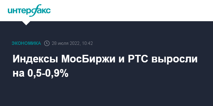 Москва. 28 июля. INTERFAX.RU - Рынок акций РФ открылся в четверг ростом цен blue chips на фоне благоприятной внешней фондовой и сырьевой конъюнктуры, подогретой решением Федрезерва США повысить ставку на ожидаемые 0,75 процентного пункта. Индексы МосБиржи и РТС за минуту торгов выросли на 0,5-0,9%, раллируют расписки "О'Кей" на квартальном отчете.