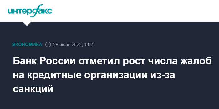 Банк России отметил рост числа жалоб на кредитные организации из-за санкций