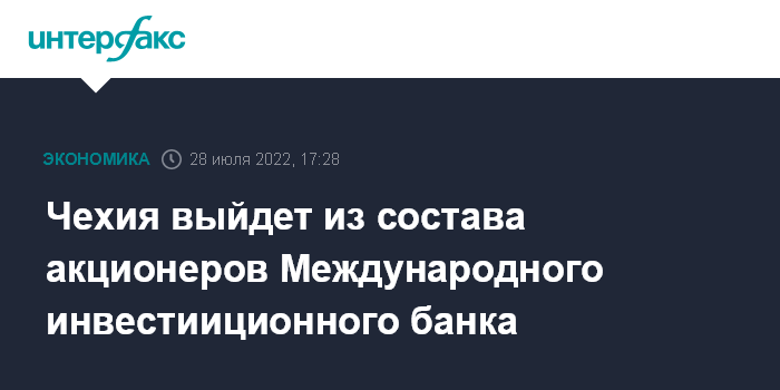 Москва. 28 июля. INTERFAX.RU - Чехия через полгода выйдет из состава акционеров Международного инвестиционного банка, ключевым собственником которого является Россия.