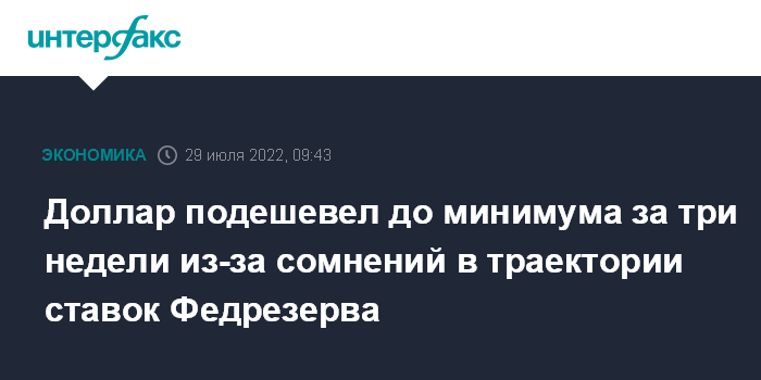 Москва. 29 июля. INTERFAX.RU - Курс доллара к основным мировым валютам снижается в пятницу, поскольку трейдеры начинают пересматривать свои прогнозы относительно дальнейшей траектории ключевой процентной ставки Федеральной резервной системы, пишет Trading Economics.