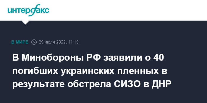 В Минобороны РФ заявили о 40 погибших украинских пленных в результате обстрела СИЗО в ДНР