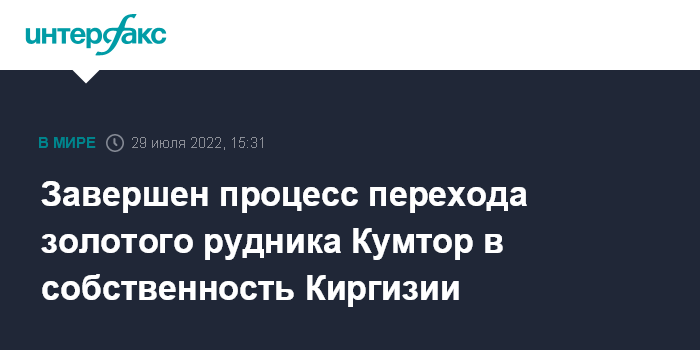 Согласно достигнутому соглашению, месторождение Кумтор полностью переходит в собственность республики. При этом за Киргизией признается право собственности на золото, произведенное на руднике с 15 мая 2021 года.