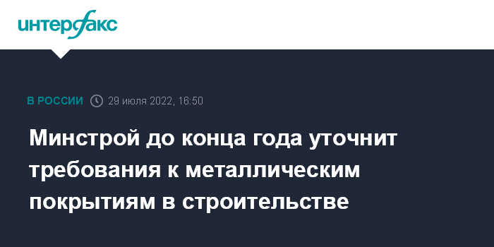 Минстрой до конца года уточнит требования к металлическим покрытиям в строительстве