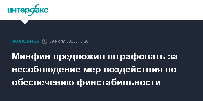 Минфин предложил штрафовать за несоблюдение мер воздействия по обеспечению финстабильности