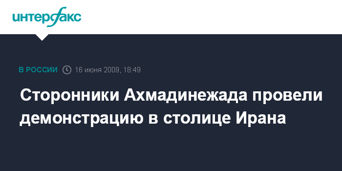 Тегеран. 16 июня. INTERFAX.RU - Несколько тысяч сторонников президента Ирана Махмуда Ахмадинежада приняли участие в демонстрации в Тегеране, сообщает во вторник иранское государственное телевидение.