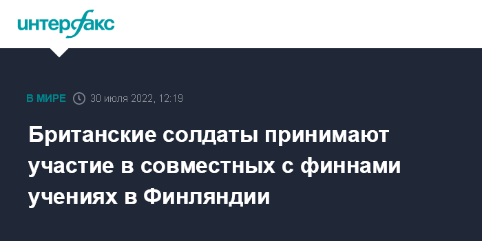 Москва. 30 июля. INTERFAX.RU - Подразделения британской, американской и финской армий проводят учения на территории Финляндии, в то время как Хельсинки продолжает подготовку ко вступлению в НАТО.