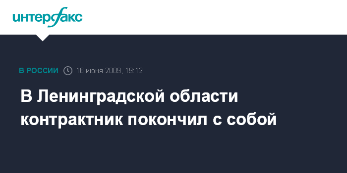 Санкт-Петербург. 16 июня. INTERFAX.RU - В одной из воинских частей, дислоцирующейся в Ленинградской области, покончил с собой военнослужащий контрактной службы.