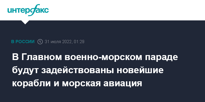 Военно-морские парады 31 июля запланированы в шести российских городах (Балтийск, Владивосток, Петропавловск-Камчатский, Каспийск, Новороссийск и Североморск), а также в сирийском Тартусе.