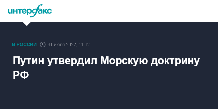 Москва. 31 июля. INTERFAX.RU - Президент России Владимир Путин подписал указ "Об утверждении Морской доктрины Российской Федерации", сообщает в воскресенье пресс-служба Кремля.