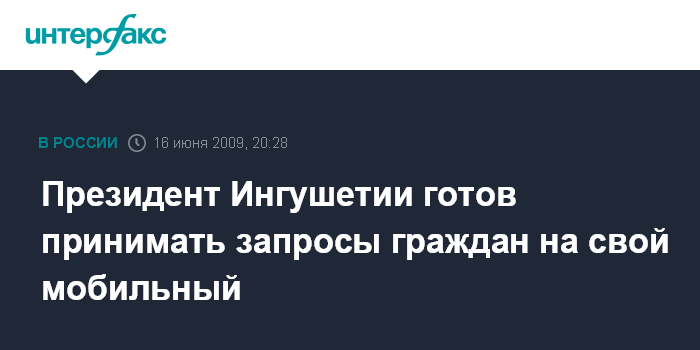 Магас. 16 июня. INTERFAX.RU - Президент Ингушетии Юнус-Бек Евкуров обнародовал номер своего мобильного телефона для того, чтобы любой житель республики мог обратиться по конкретному вопросу.